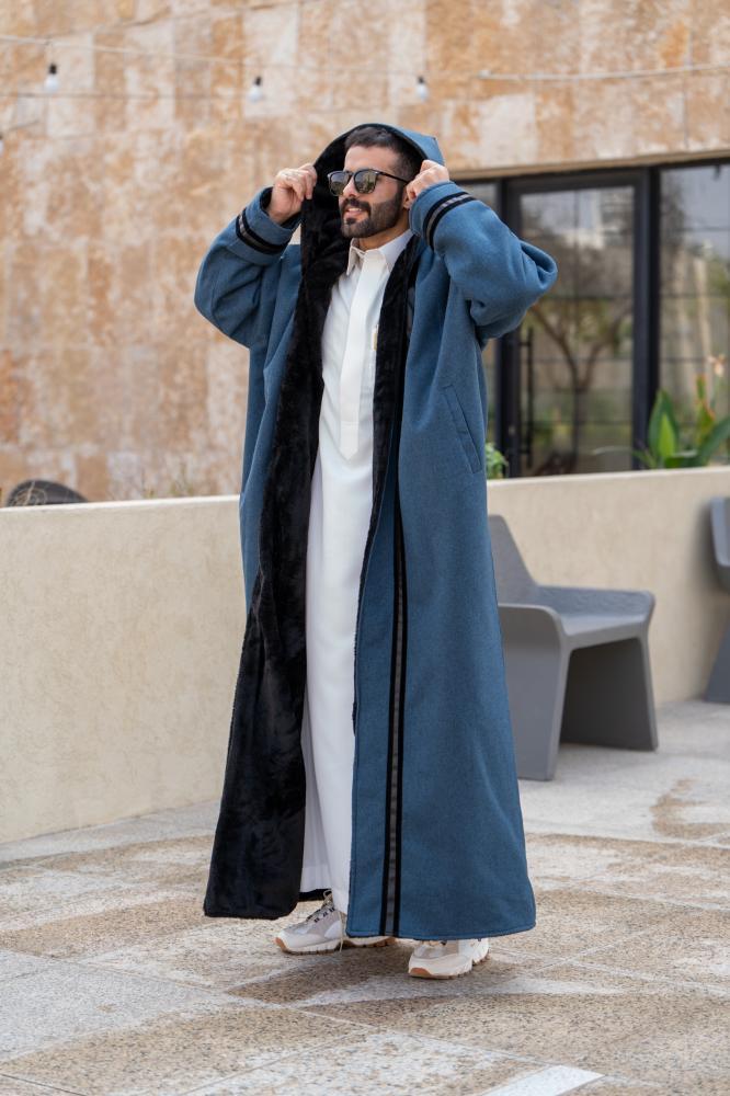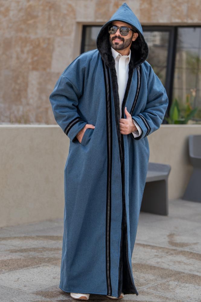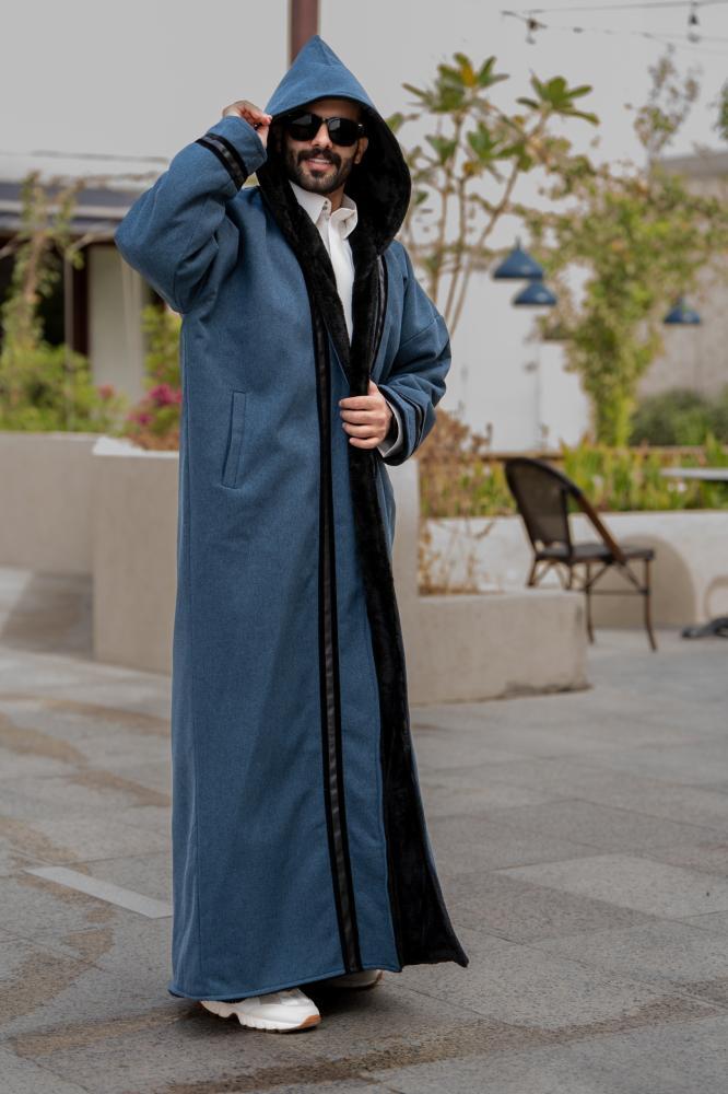 فرو اسود من داخلها وتتميز بقماش باللون ازرق من الخارج