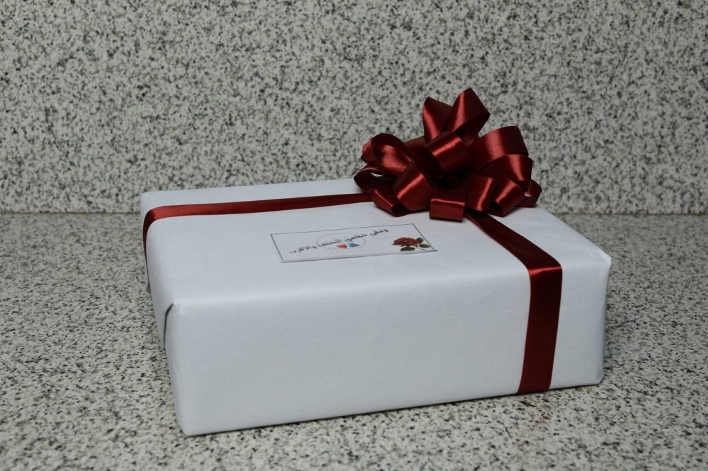 تغليف باللون الابيض مع شريطه عنابيتغليف لسديريلكي يقدم بشكل متميز جداومظهر انيق خاصكما بمكانكإضافة كرت مجاني