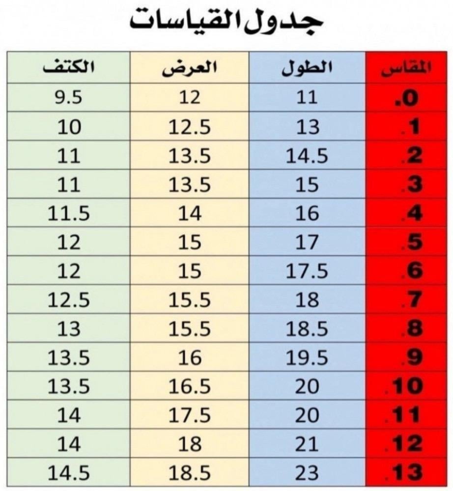 بحاله جسم الطفل متين يرجى اختيار المقاس المناسب من دليل القياسات