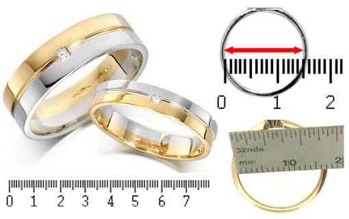 2 - عن طريق المسطرة قيس من منتصف القطر الداخلي للخاتم كما هوا موضح في الخط الأحمر .